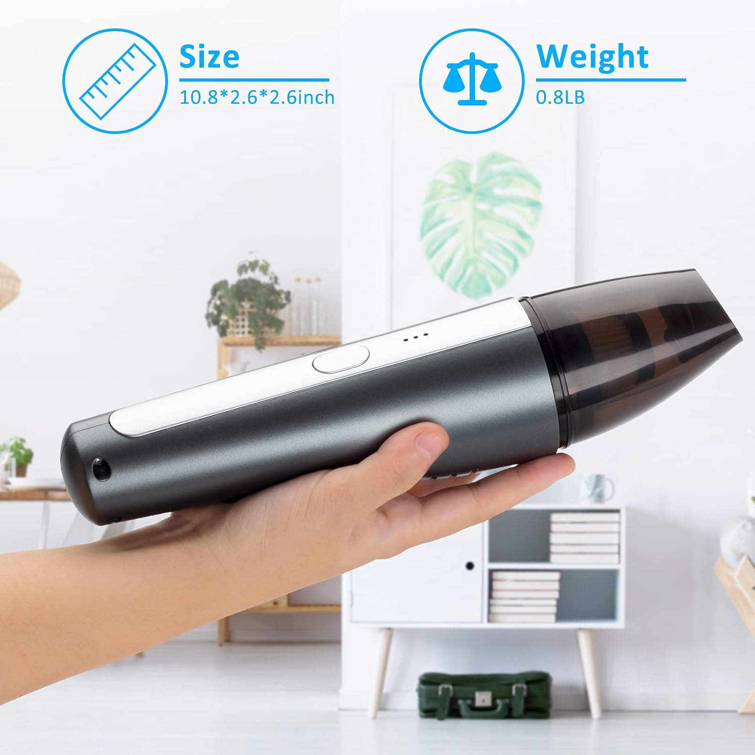 - Portátil inalámbrico de mano Nuestra mini aspiradora para coche pesa solo 0.7 libras, compacta y ligera, fácil de transportar y almacenar. El estilo de diseño inalámbrico hace que sea más cómodo de usar, no hay necesidad de preocuparse por los grilletes del cable de alimentación, y puedes moverte libremente en cualquier momento y en cualquier lugar durante la limpieza.