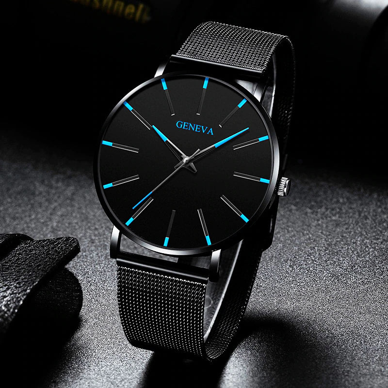 Reloj ultradelgado minimalista para hombre, cronógrafo de cuarzo con correa de malla de acero inoxidable